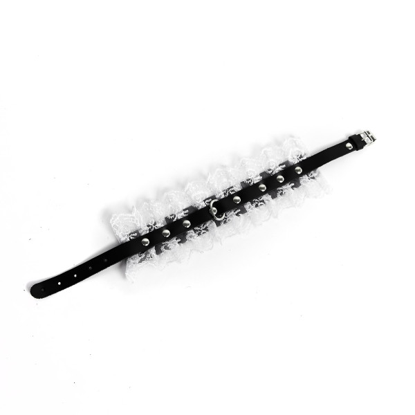 Ошейник выполнен из натуральной кожи и декорирован роскошным кружевом белого цвета! Сочетание кожи и кружева придает образу особенный шарм и выглядит мега провокационно!