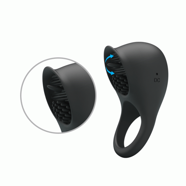 Выполнено кольцо из медицинского силикона в черном цвете. По тактильным ощущениям нежное и бархатистое. Прекрасно расстягивается, не пережимает половой член и не доставляет мужчине дискомфортных ощущений. Увеличенный клиторальный стимулятор изнутри имеет россыпь нежных силиконовых шипиков и миниатюрный язычок, который двигается вверх-вниз и имитирует куни!